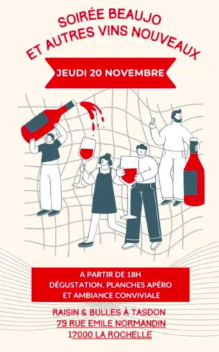 Au programme : dégustations, planches apéritives et échanges gourmands dans le cadre chaleureux du quartier Tasdon. Une soirée ouverte à tous, parfaite pour célébrer l’arrivée des vins nouveaux autour de belles découvertes.
