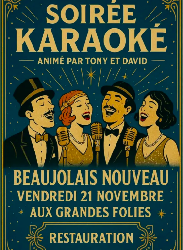 Le restaurant Les Grandes Folies, à La Rochelle, célèbre l’arrivée du Beaujolais Nouveau ce vendredi 21 novembre avec une soirée karaoké animée par Tony et David. Une ambiance festive où verres levés, refrains repris en chœur et fausses notes assumées feront partie du programme.