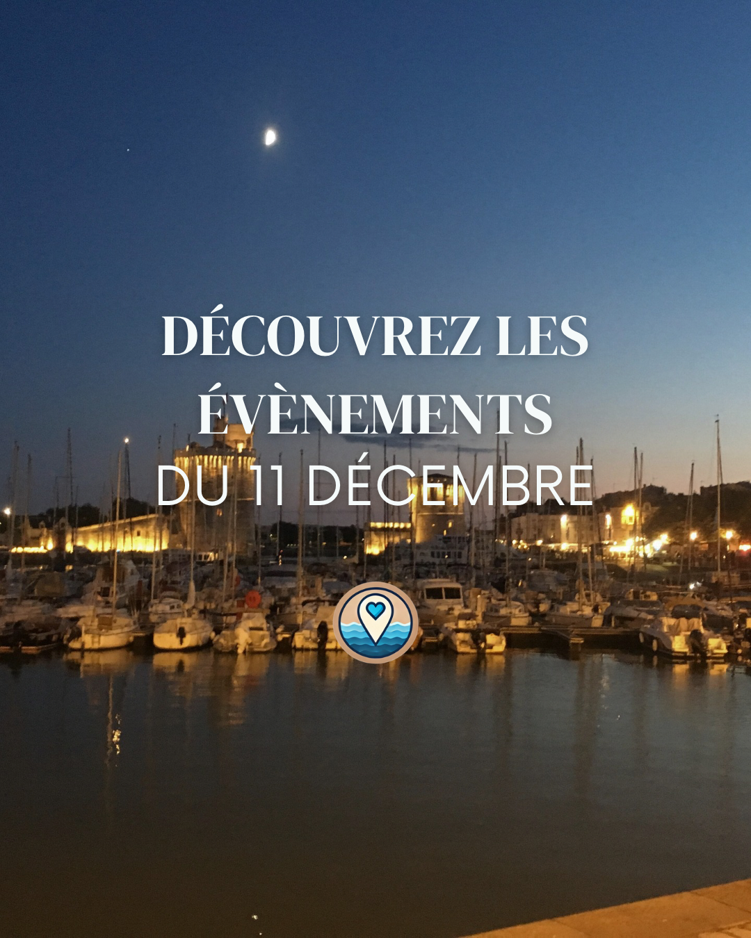 Voici les événements du 11 décembre à ne pas manquer autour de La Rochelle. Retrouvez-les tous dans l’application Ma Vie Rochelaise.
