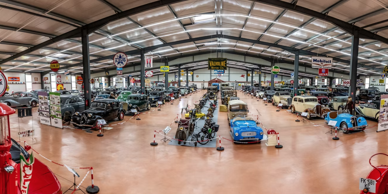 Sur plus de 3 500 m² d’exposition, découvrez 125 voitures anciennes issues de 36 marques françaises et étrangères : Peugeot, Citroën, Rolls-Royce, Ford, Alfa Roméo, BMW…