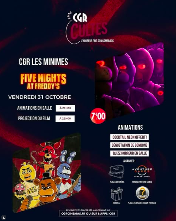 Le cinéma CGR Les Minimes t’invite à une soirée terrifiante spéciale Five Nights at Freddy’s !