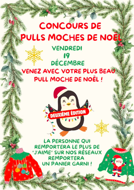 Résumé rapide : Les Tilleuls organisent un concours de pulls moches de Noël le 19 décembre 2025. Les participants viennent avec leur pull le plus kitsch et tentent de remporter un panier garni.
