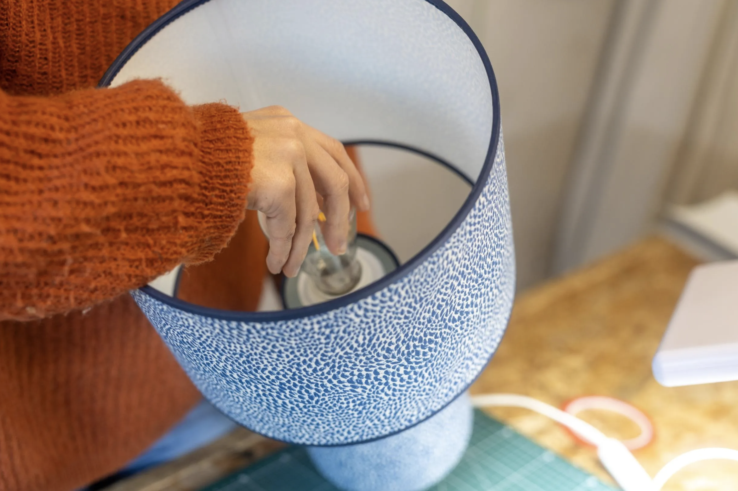 Glissez-vous dans la peau d'un abat-jouriste le temps d'un après-midi ! Céline, artisane passionnée, vous ouvre les portes de son atelier à Angoulins pour concevoir votre propre lampe unique composée de deux abat-jour.