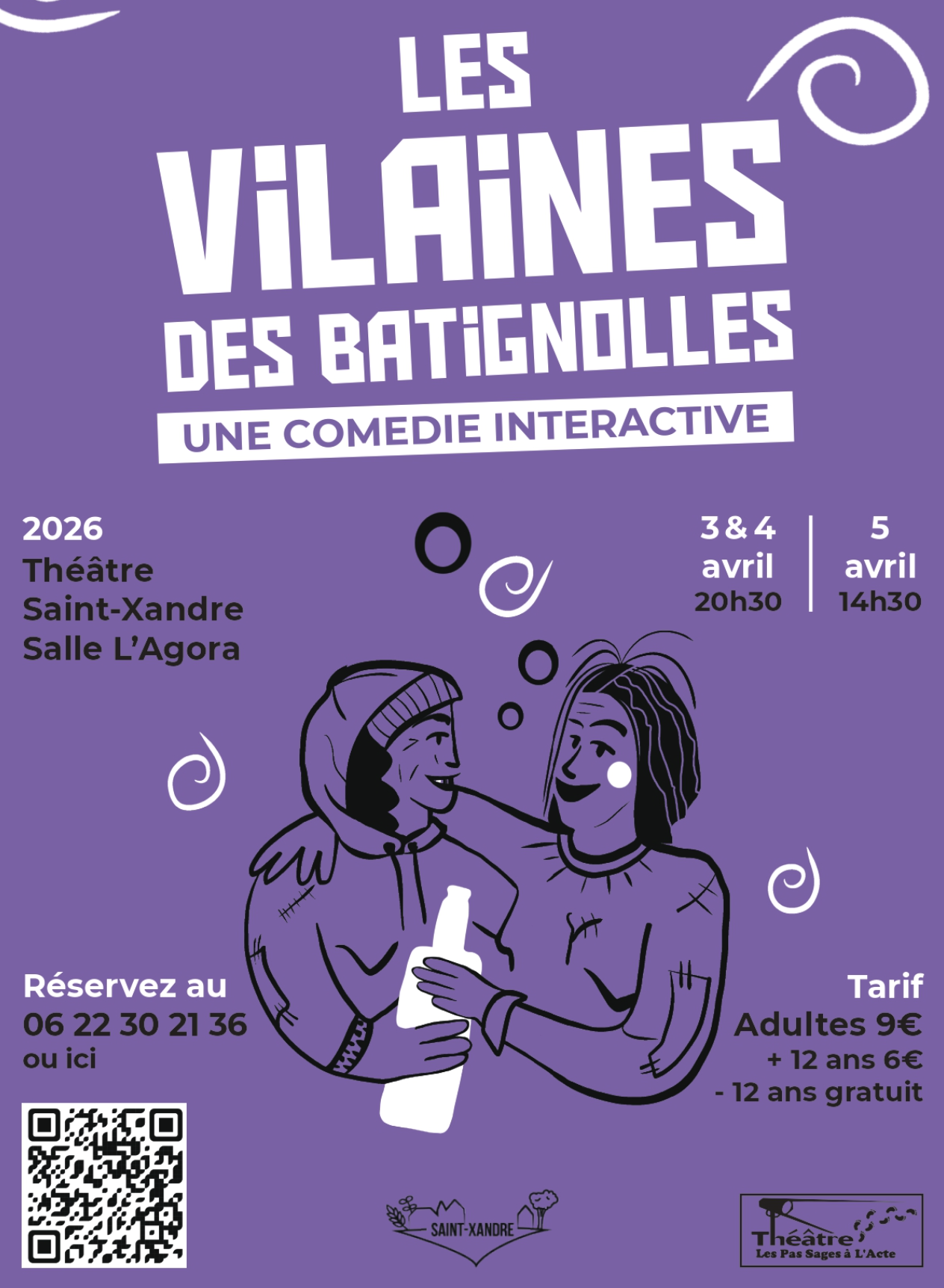 Les Pas Sages à l'Acte vous présentent "Les Vilaines des Batignolles", une comédie interactive déjantée qui s'installe à Saint-Xandre pour trois représentations exceptionnelles. Entre humour potache et galerie de personnages hauts en couleurs, préparez-vous à une immersion sociale pas comme les autres.