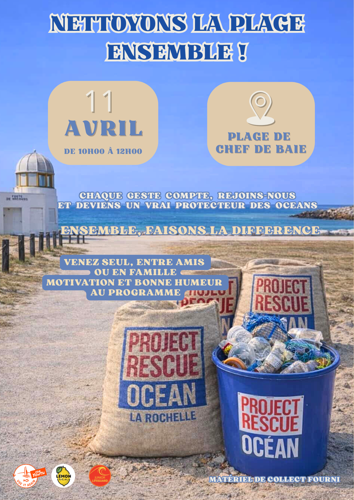 Devenez un protecteur des océans ! Le samedi 11 avril 2026, rejoignez l'antenne rochelaise de Project Rescue Ocean pour une matinée d'action concrète en faveur de notre littoral.