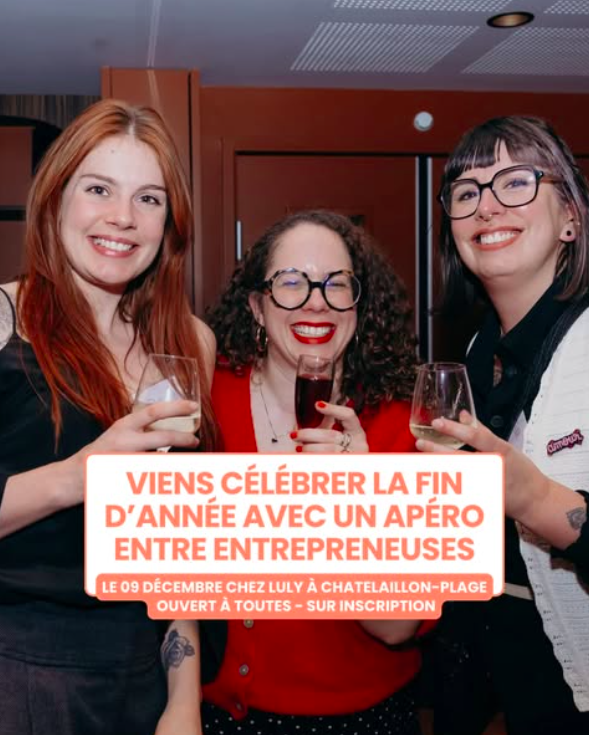 Résumé rapide : Le 9 décembre, un apéro chaleureux entre entrepreneuses est organisé chez Luly à Châtelaillon, près de La Rochelle. Un moment bienveillant pour échanger, rire, partager et célébrer la fin d'année ensemble.