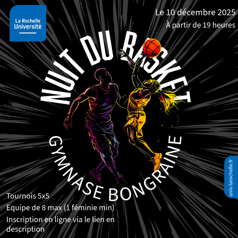 L’Association Sportive Universitaire de La Rochelle organise une grande soirée dédiée au basket avec un tournoi 5x5 mixte : une fille minimum sur le terrain à chaque match et 8 joueurs maximum par équipe.