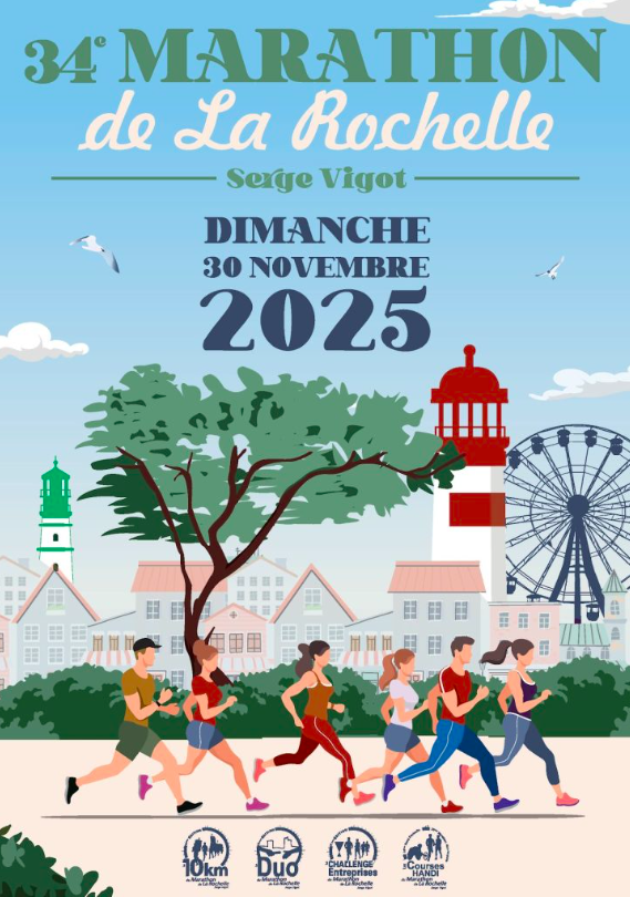 La 34ᵉ édition du Marathon de La Rochelle Serge Vigot revient ce dimanche 30 novembre 2025. Événement majeur du sport en Charente-Maritime, ce marathon associatif attire chaque année des milliers de participants venus relever un défi mythique au cœur du centre-ville de La Rochelle. Au programme : le marathon emblématique, des courses accessibles à tous, une Pasta Party conviviale la veille, et une organisation reconnue comme l'une des plus performantes de France. Une journée sportive, festive et dynamique, portée par une ambiance chaleureuse et le soutien du public rochelais.