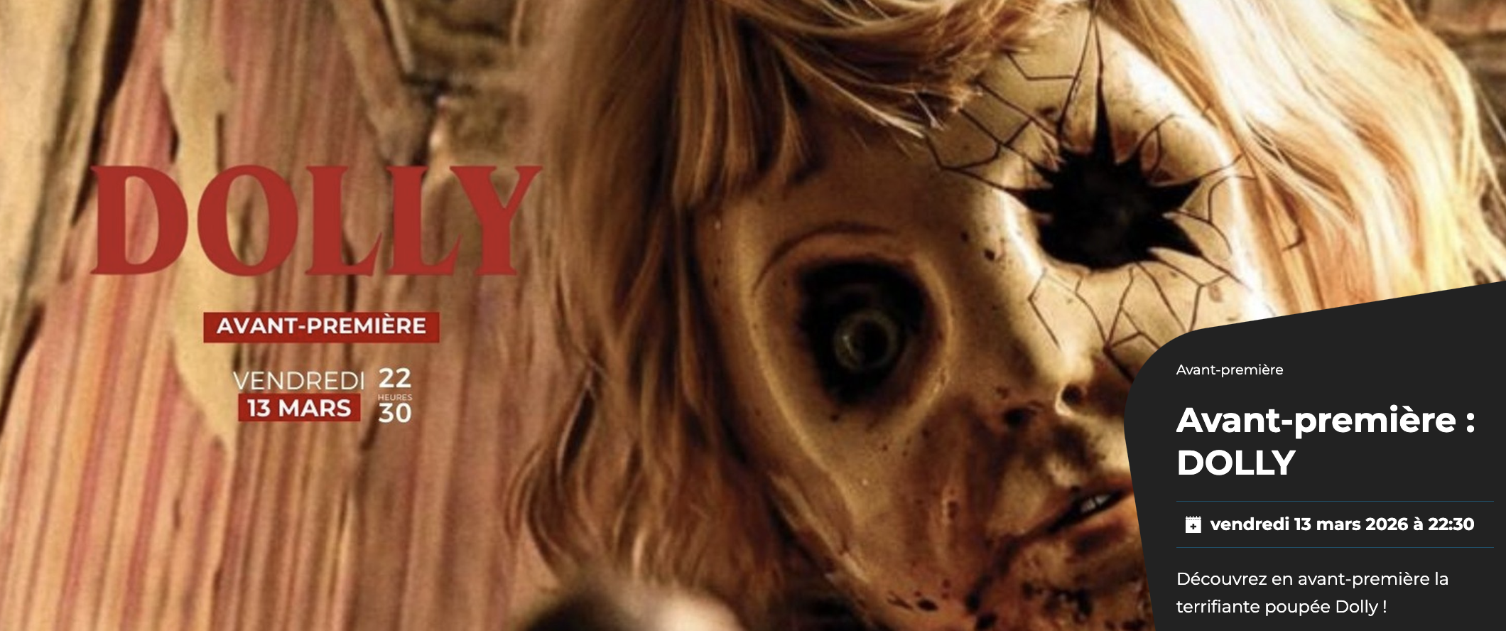 Avis aux amateurs de sensations fortes ! Le CGR La Rochelle - Les Minimes vous propose de découvrir en avant-première "Dolly", le nouveau film d'horreur qui promet de glacer le sang des spectateurs rochelais.