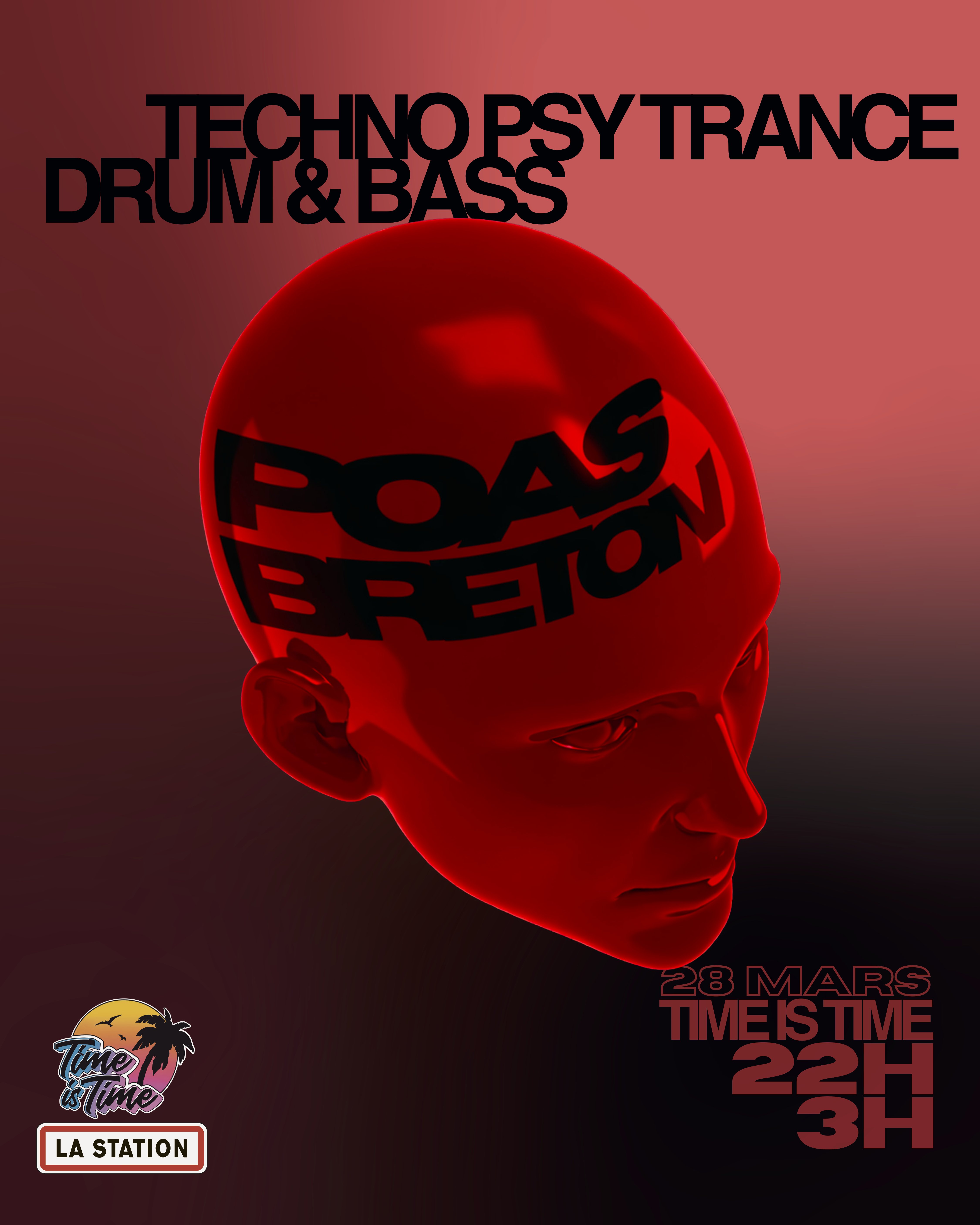 Préparez-vous pour une immersion sonore totale ! Le samedi 28 mars, Time Is Time devient l'épicentre de l'électro rochelaise pour une nuit placée sous le signe des basses lourdes et des rythmes hypnotiques.